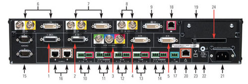 - 7.Video output 2: 2-BNC (S-Video, Composite) DVI-I (VGA, DVI, YPbPr)